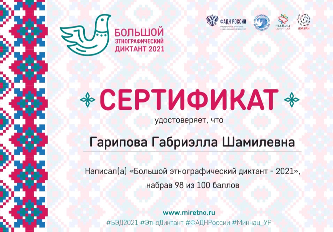 Наша школа также приняла участие в Международной акции «Большой этнографический диктант» который будет проходить с 3 по 7 ноября 2021.